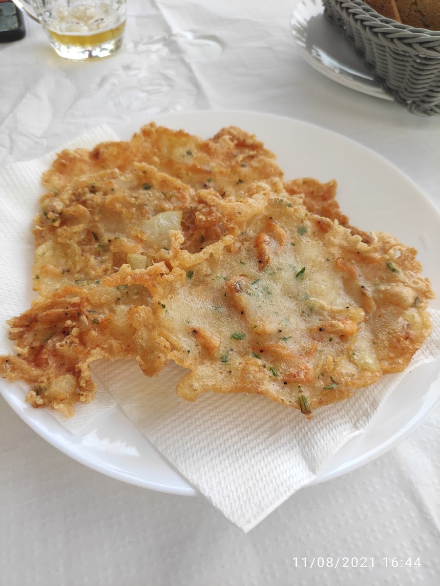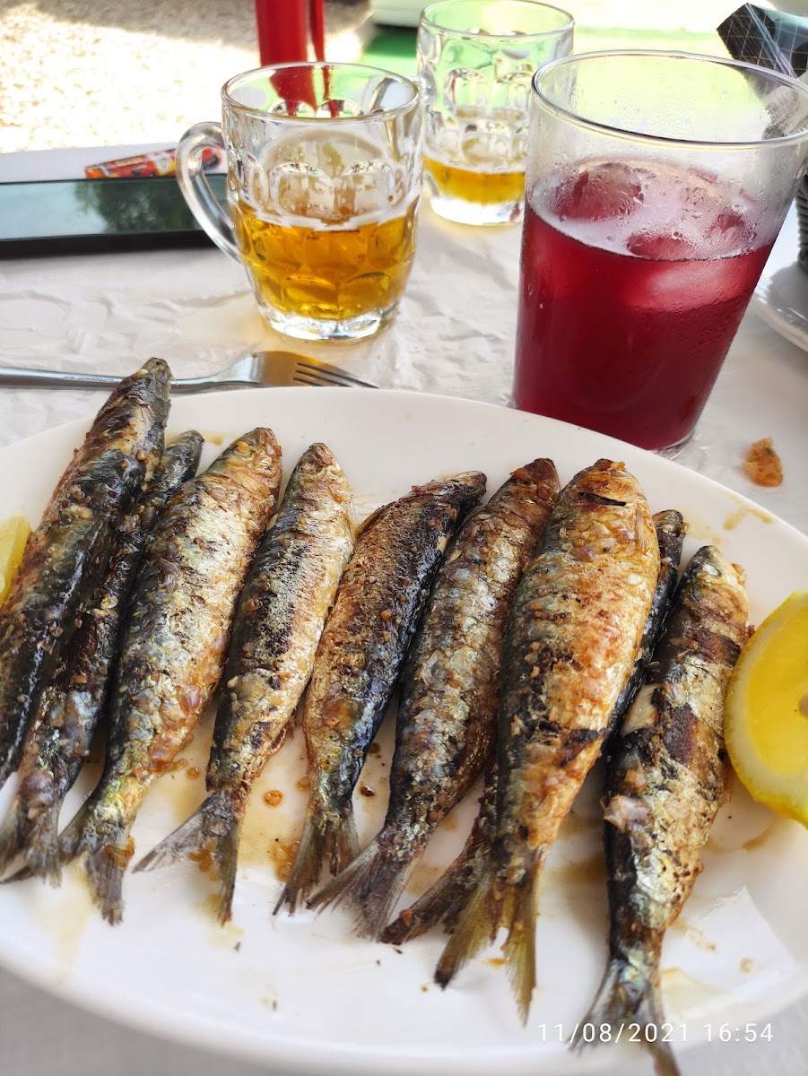 The menu leans strongly into traditional Andalusian flavors, especially dishes connected to the sea. One of the standout plates is the Tortillita de Camarones, a delicate shrimp fritter that arrives crisp, golden, and incredibly aromatic. It’s the type of dish that disappears quickly from the table because everyone keeps reaching for another bite. Equally memorable are the Sardinas Asadas, grilled sardines that capture the simplicity of coastal Spanish cooking-fresh fish, fire, and just the right seasoning.